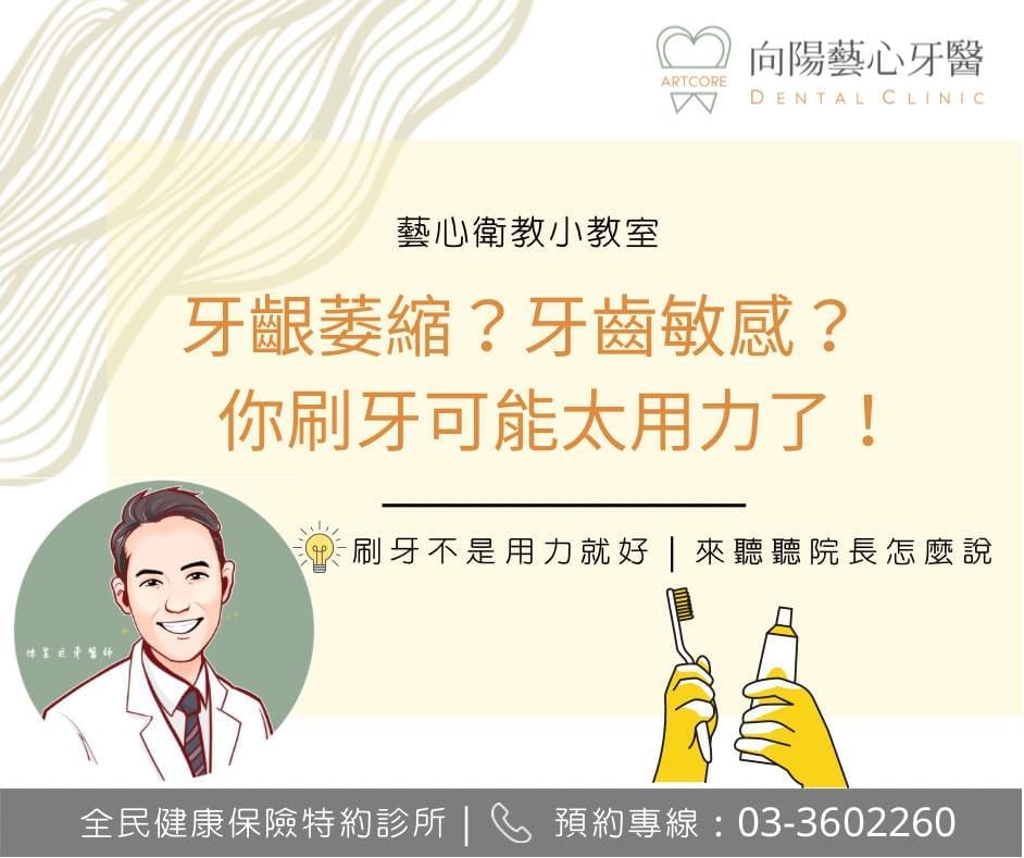 牙齒刷得太用力會導致牙齦受傷萎縮,以及牙齒表面的牙本質受傷,導致神經小管外露,造成: